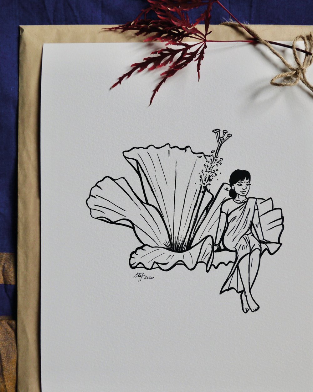Print of an original ink illustration, part of the Inktober 2020 series.